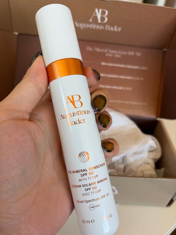 SPF that acts like skincare 🙌 Augustinus Bader The Mineral Sunscreen SPF 50 is my luxe, everyday shield. 100% mineral (non-nano zinc oxide + titanium dioxide) and fragrance-free, powered by AB’s TFC8—so it protects and plays nice with sensitive, postpartum skin. Lotion-y texture, blends to a soft glow, layers clean under makeup. It’s spendy, so I save it for face/neck/chest and use a separate body SPF. Two-finger rule, reapply, done. ☀️🍼
