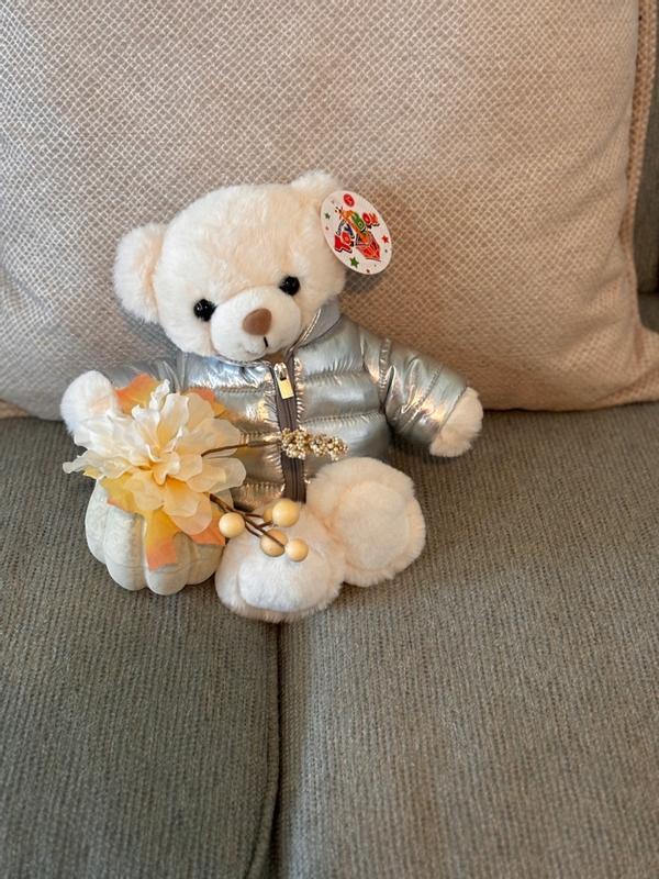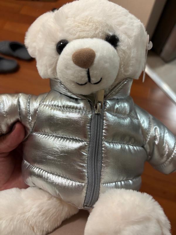 This is the cutest bear. Very soft and chic in its little puffer jacket.