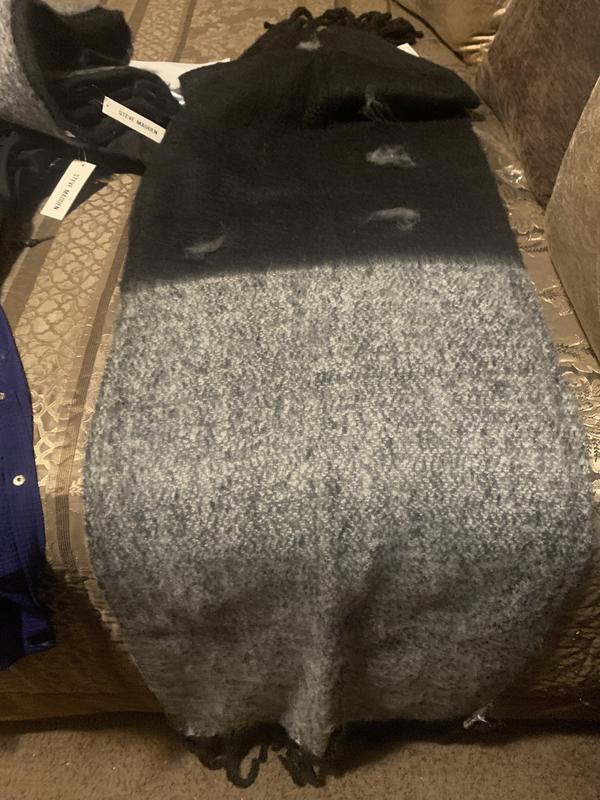 Classy and cozy, this Steve Madden scarf is made from soft material for lasting comfort. It is accented with twisted fringe detailing that adds an elegant touch.