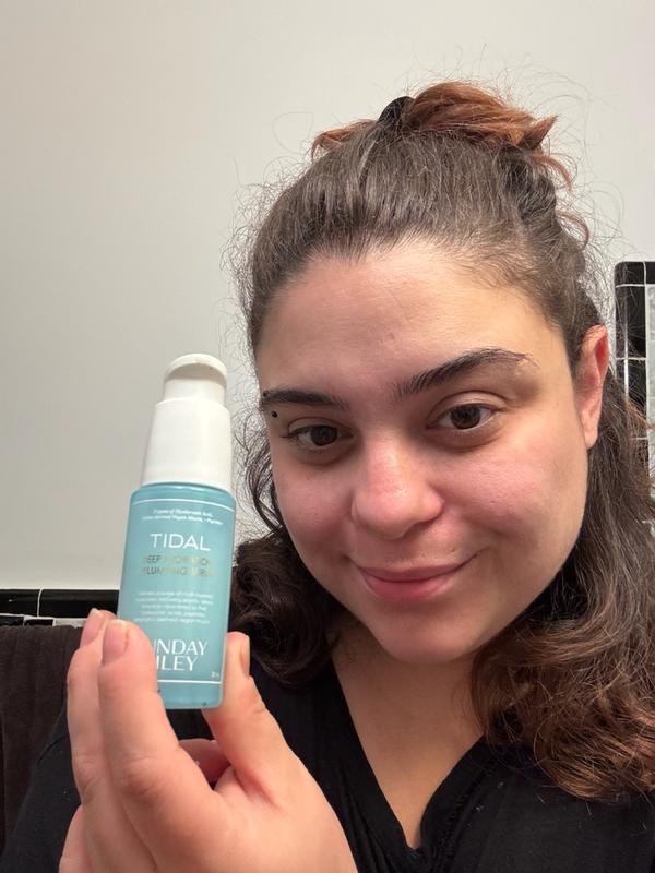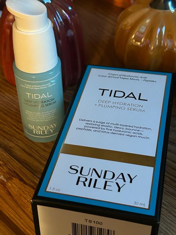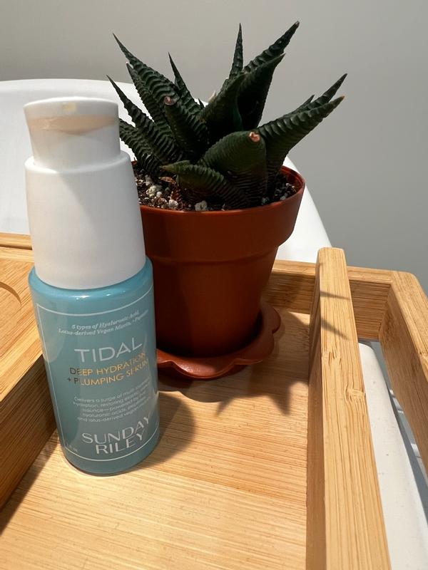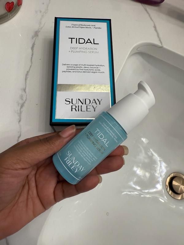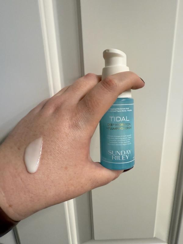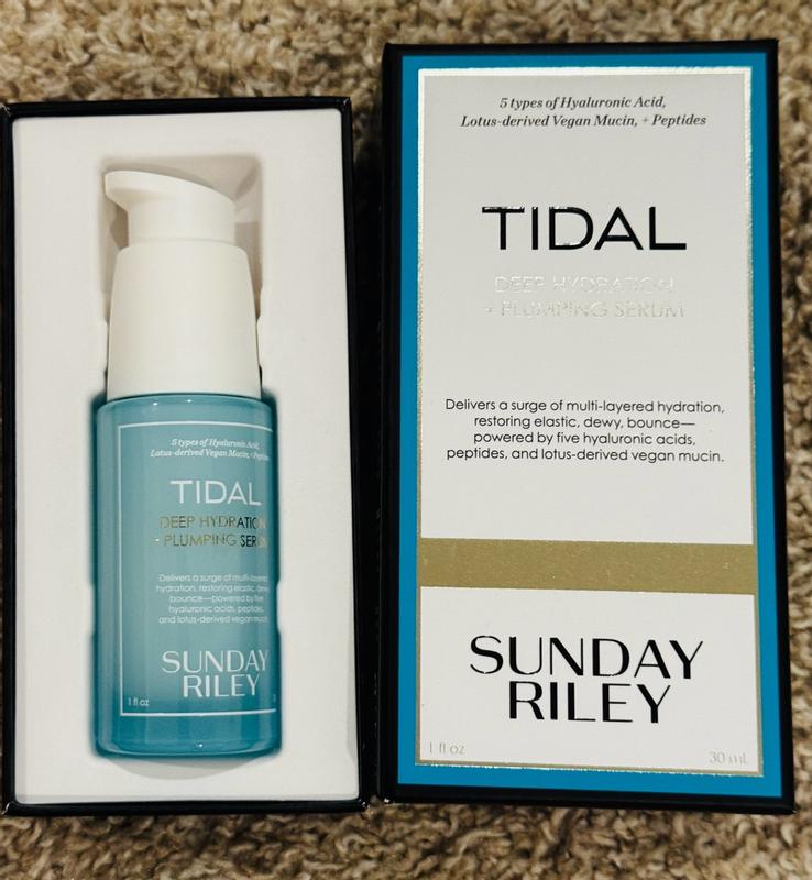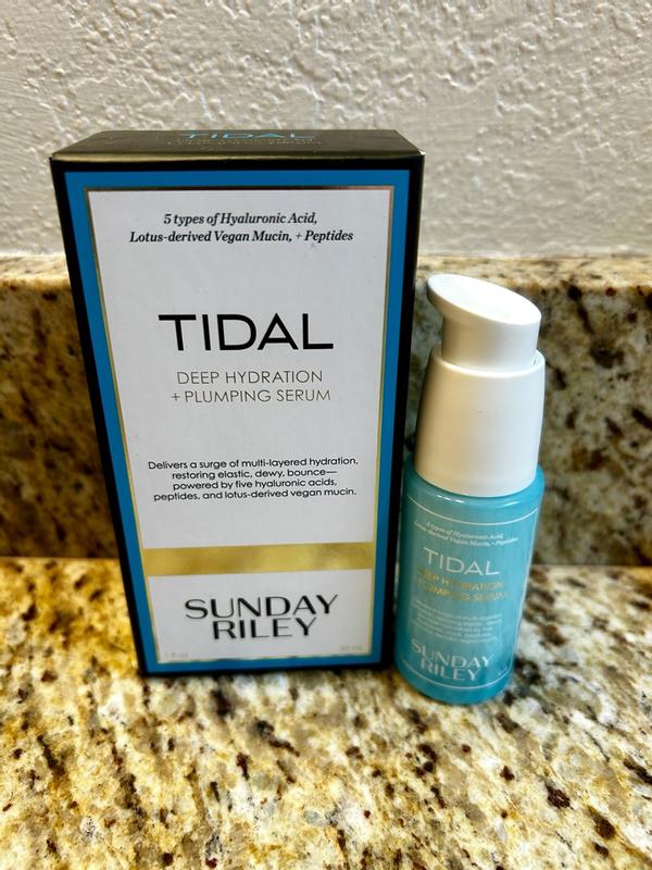 I received this sunday riley tidal deep hydration + plumping serum complementary from influenster to share my honest review I am using this serum last 2 week and results are amazing , during my pregnancy i had pigmentation on my cheeks but now without any doubt don’t have pigmentation. I really love this serum it plums my skin but i don’t like the smell of this serum.
